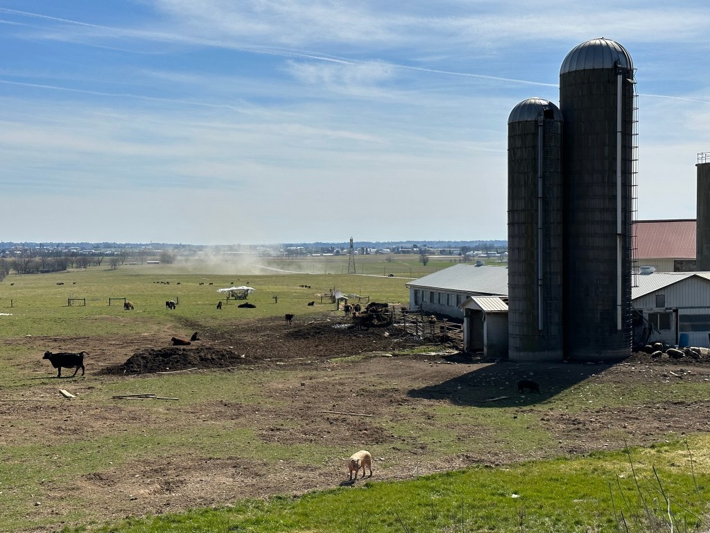 At this point we only have a few barns left. There’s one we pass with the barn doors spread open and hay bales piling up two stories. I watch Paul’s mini goldendoodle dart through the doors and up to the top of the bales in mere seconds. “That’s Snickerdoodle” Paul tells me. The barn across from the hay is filled with large dusty equipment that goes about mixing feed. Metal switches with white labels allow Paul to make recipes his nutritionist recommends based on the current cow’s milk production. “It’s basically the order screens at Sheetz.” I say. This gets a small chuckle from Paul, “Yeah I guess you’re right”