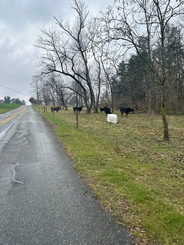 There are over 1,800 dairy farms in Lancaster County, many of them Amish, owning under a hundred head, up to a few farms with over fifteen hundred head, making the county sixth in the nation for dairy production. If I was going to embark on an exploration to see cows in plenty I suppose there are only five other counties offering more. But this was my backyard. So on a cool sunny morning in March of 2023 with a week off between changing jobs, I looked at my red gravel bike slanted against the garage door like a ship in harbor, loaded with packed nylon bags, a tent, and a sleeping bag. In the handlebar bag I crammed a 3×5 notebook and a Sony camera, fully charged, poking out slightly, ready to record the events that would ultimately become — The Cow Story.